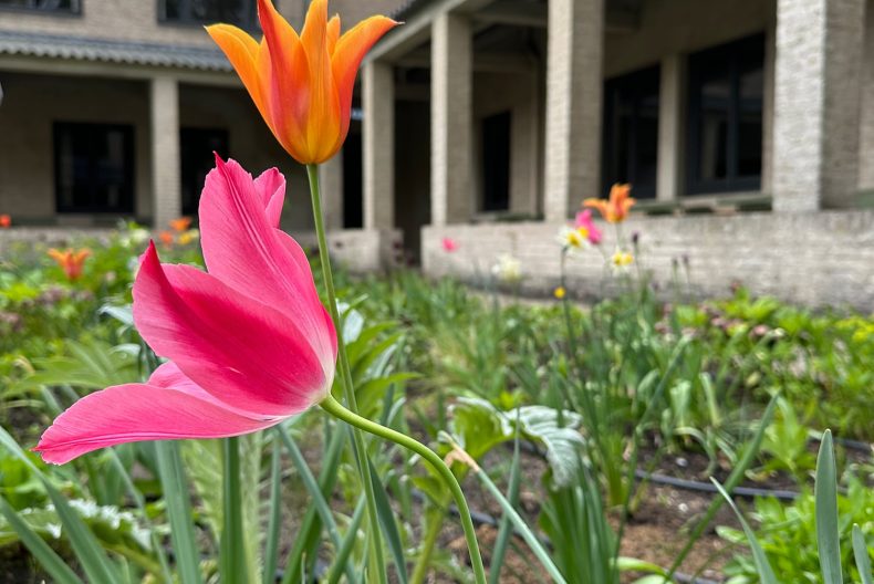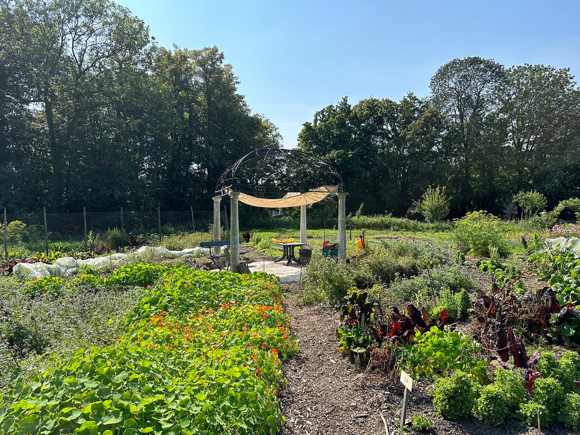 Samen met een groep vrijwilligers wordt hier onder leiding van moestuincoördinator Jessie gewerkt aan een biodiverse tuin. De oogst van groenten, kruiden en eetbare bloemen wordt gebruikt in de keuken en gedeeld met bezoekers.